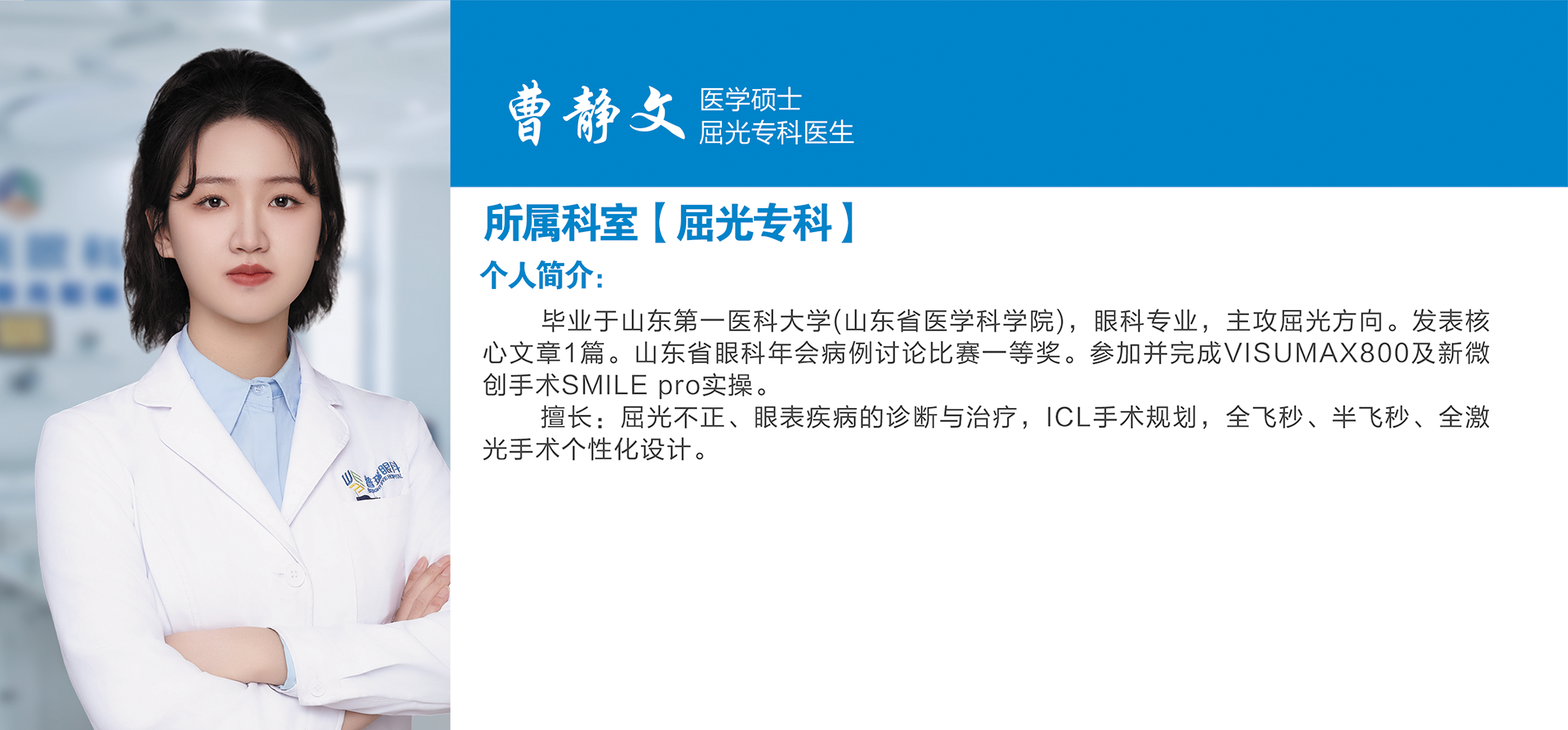 哈尔滨普瑞眼科屈光专科曹静文医生: