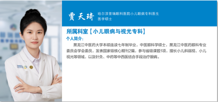 哈尔滨普瑞眼科小儿眼病与视光专科贾天琦医生: