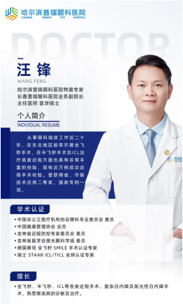 哈尔滨普瑞眼科屈光专科特邀专家汪峰: