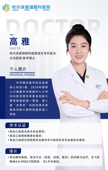 哈尔滨普瑞眼科屈光专科高雅医生: