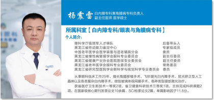 哈尔滨普瑞眼科白内障专科/眼表与角膜病专科杨震雷主任: