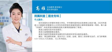 哈尔滨普瑞眼科屈光专科高雅医生: