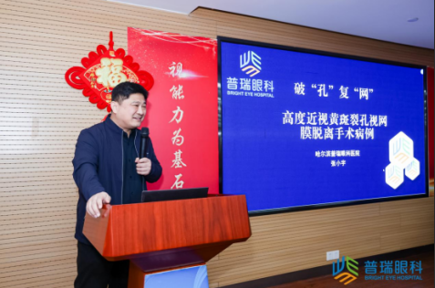 在学术分享环节,哈尔滨普瑞眼科医院张小宇主任凭借扎实的临床功底与丰富的实战经验,带来了《破“孔”复“网”——高度近视黄斑裂孔视网膜脱离手术病例》的分享。紧扣临床实际,案例鲜活、重点突出,为参会同仁提供了极具参考价值的诊疗思路。充分展现了其严谨的治学态度与精湛的专业能力。