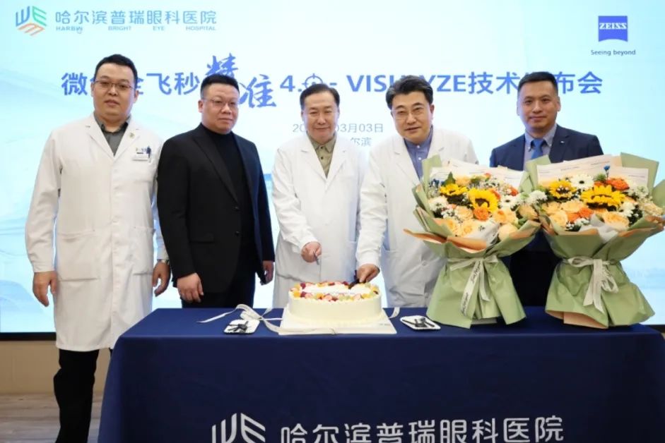普瑞眼科黑龙江省区总院长滕岩、哈尔滨普瑞眼科医院业务院长韩清、哈尔滨普瑞眼科医院执行院长李柏林、哈尔滨普瑞眼科医院业务副院长包赫,与卡尔蔡司(上海)管理有限公司黑龙江省区经理肖志共同出席,见证了这一重要时刻。