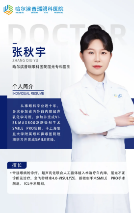 哈尔滨普瑞眼科屈光专科张秋宇医生: