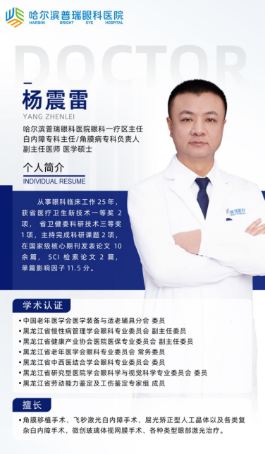 哈尔滨普瑞眼科白内障专科/眼表与角膜病专科杨震雷主任: